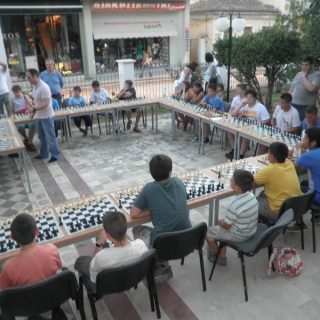 Ακολουθούν μερικά επιλεγμένα στιγμιότυπα από τον αγώνα επίδειξης – σιμουλτανέ, του προπονητή του Μέλισσου στο τμήμα Βαθέος, Δαγκλή Δημητρίου εναντίον μαθητών από το Καρλόβασι, στο προαύλιο της Πανεπιστημιακής Βιβλιοθήκης, τον Ιούνιο του 2013. Υπενθυμίζουμε για την ιστορία ότι ο αγώνας πραγματοποιήθηκε στα πλαίσια του 1ου Σχολικού Σκακιστικού Φεστιβάλ Σάμου, συμπεριελάμβανε 22 αντιπάλους για τον κ. Δαγκλή και διήρκεσε 3,5 ώρες....