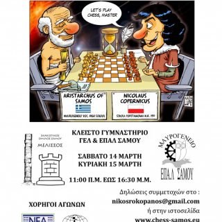 Ο Σκακιστικός Όμιλος Σάμου «Μέλισσος» προκηρύσσει τον «1ο Σαμιακό Σχολικό Διαγωνισμό Επίλυσης Σκακιστικών Ασκήσεων». Αναλυτικές οδηγίες συμμετοχής μπορείτε να κατεβάσετε από την προκήρυξη.