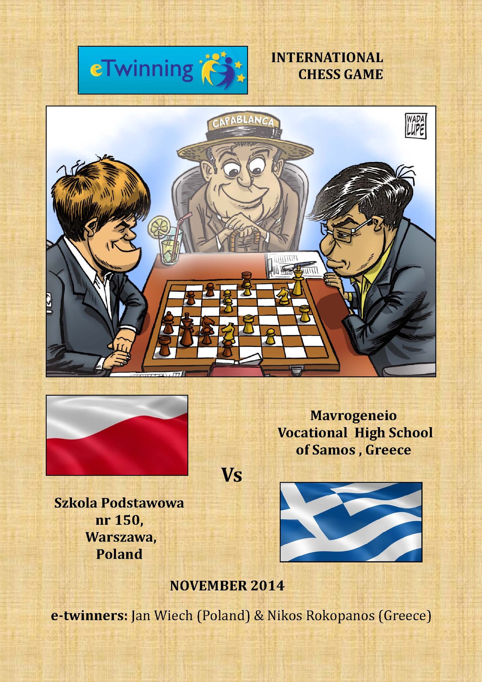 Φέτος με την απόσπαση του κ.Ροκοπάνου, προπονητή του Συλλόγου μας, το σχολείο έχει διευρήνει ακόμα περισσότερο τις ενέργειες του. Στα πλαίσια της ηλεκτρονικής πλατφόρμας για εκπαιδευτικούς (e-twinning), η οποία προωθεί την συνεργασία και την ανταλλαγή ιδεών από σχολεία όλης της Ευρώπης, ξεκίνησε η πρώτη φιλική συλλογική παρτίδα της ομάδας της λέσχης του σχολείου μας με το σχολείο από την Πολωνία.